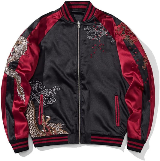 Dragon Bomber Jacket Reversible Zip Up Hoodies Japanese Streetwear