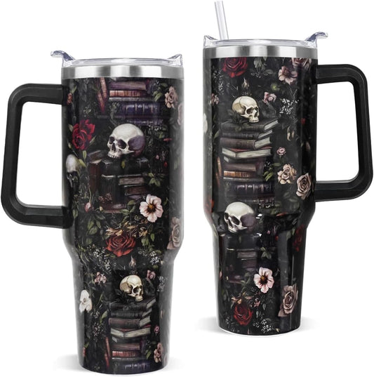Skull Bookshelf Coffee Travel Mugs Christmas Insulated Cup Funny Gifts