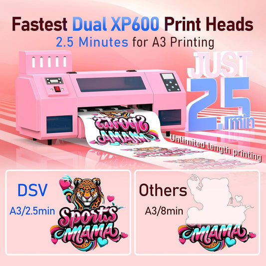 Dual XP600 Pink A3 DTF Printer Kit T Shirt Clothing Printing Machine
