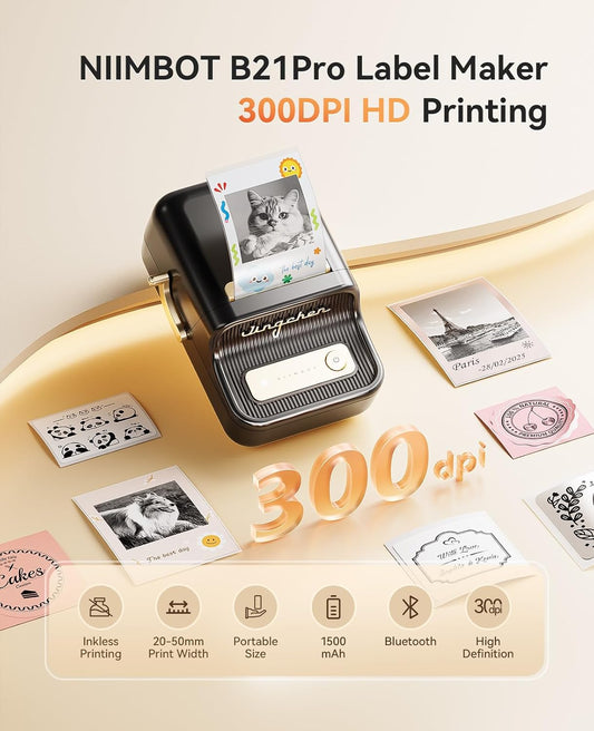 Imprimante d'étiquettes photo thermique portable 300 DPI, format 50 x 30 mm, pour notes et photos.