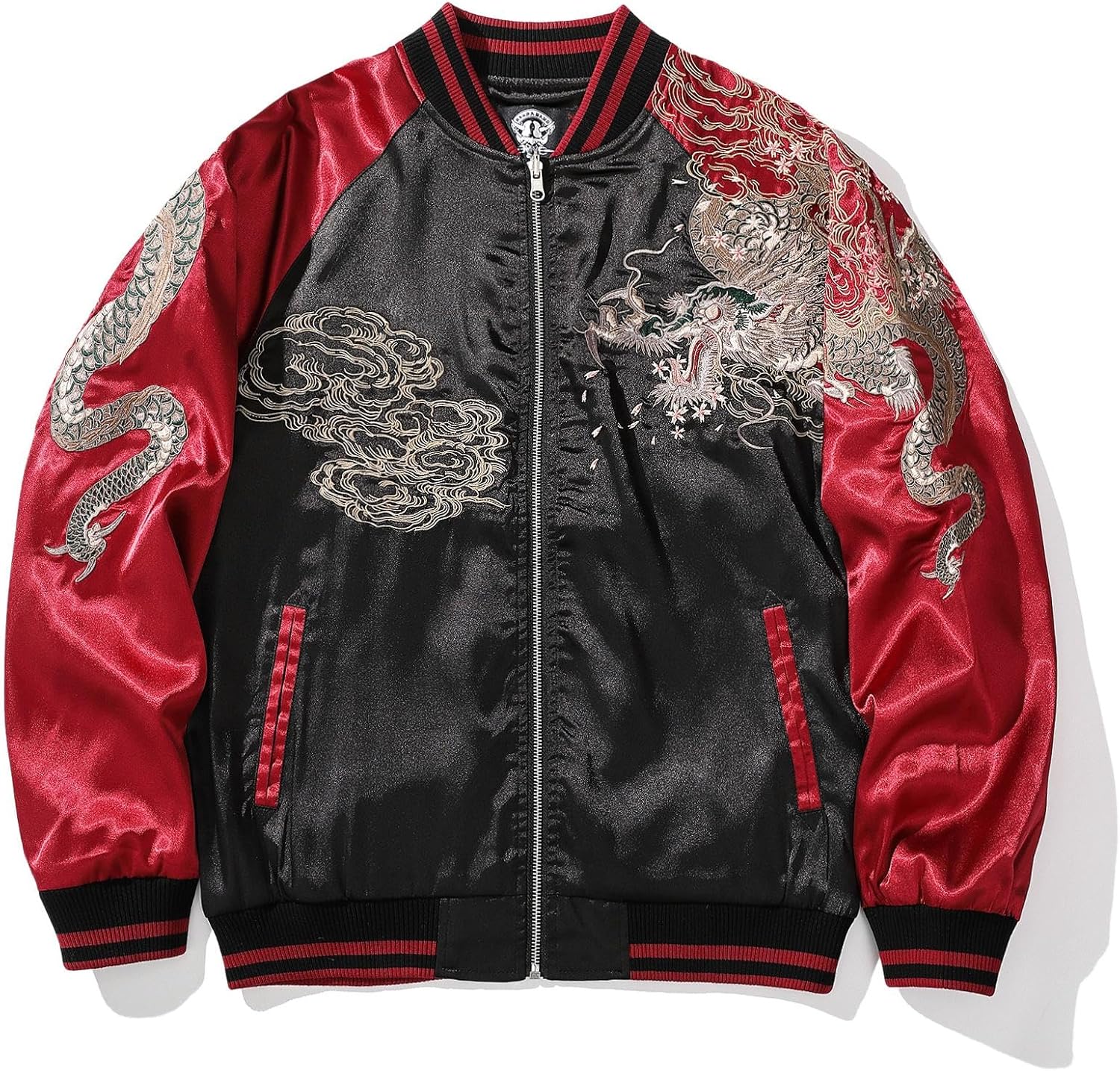 Dragon Embroidered Men's Bomber Jacket Satin Loose Streetwear Japanese Style Hip Hop Windbreaker for Spring Fall
