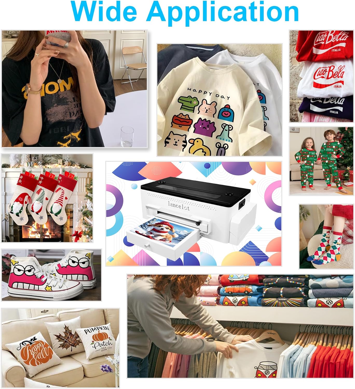 Lancelot A3 L1800 DTF printer (Direct to Film printer) is a high-quality and easy-to-use film transfer printer. It is suitable for dark and light Clothing,brings to your designs to life and direct to your small business.Desktop size, suitable for small printing studios, easy-operated for DTF new beginners.