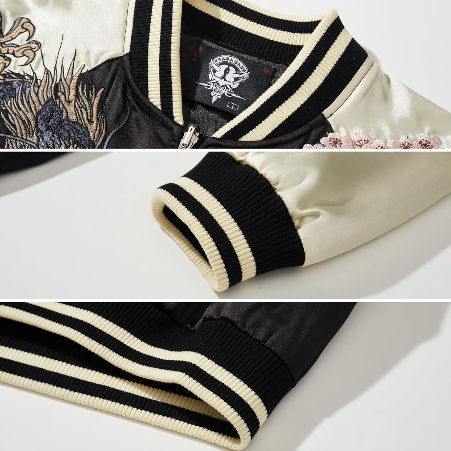 - Windproof & Stay Warm: The cuffs and hem of this sukajan jacket are ribbed, making them more airtight and elastic than traditional straight cuffs, and effectively blocking cold wind from entering the cuffs and hem, making it ideal for spring, fall, or cycling