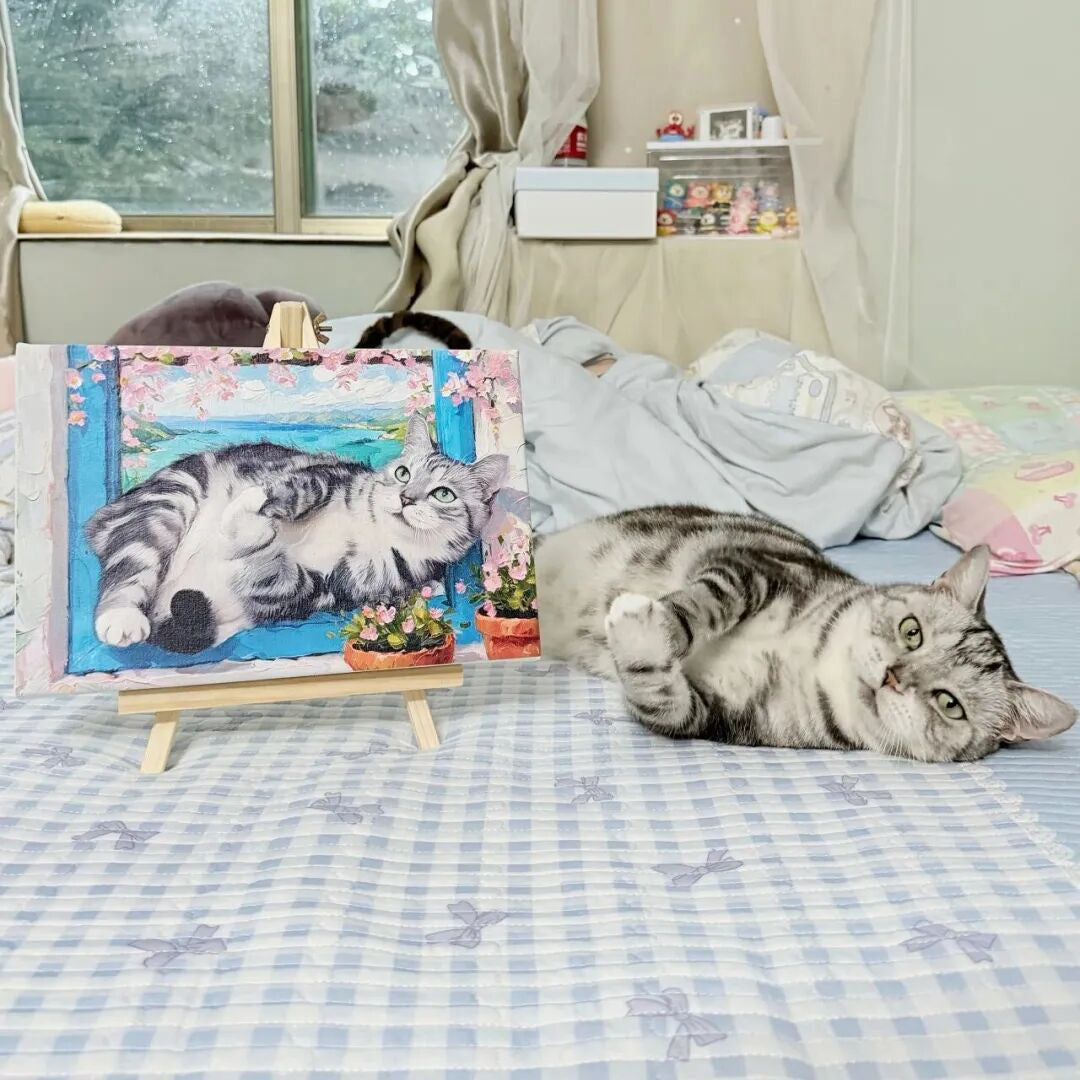 Personalized Cat Portrait Oil Painting Pet Funny Cat Love Gifts