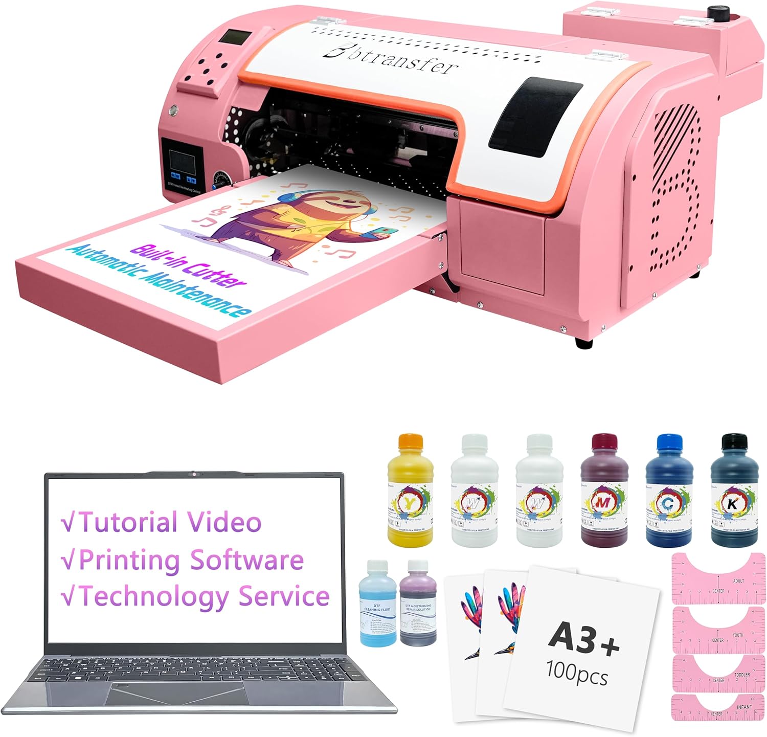 B btransfer A3 M1630 Pro DTF Printer Bundle(Carton Packaging):A3 Xp600 DTF Printing Machine ,Auto Film Cutter & Anti-Clog System,White Ink Circulation For T-shirt Printing(Printer+Laptop+Consumable)