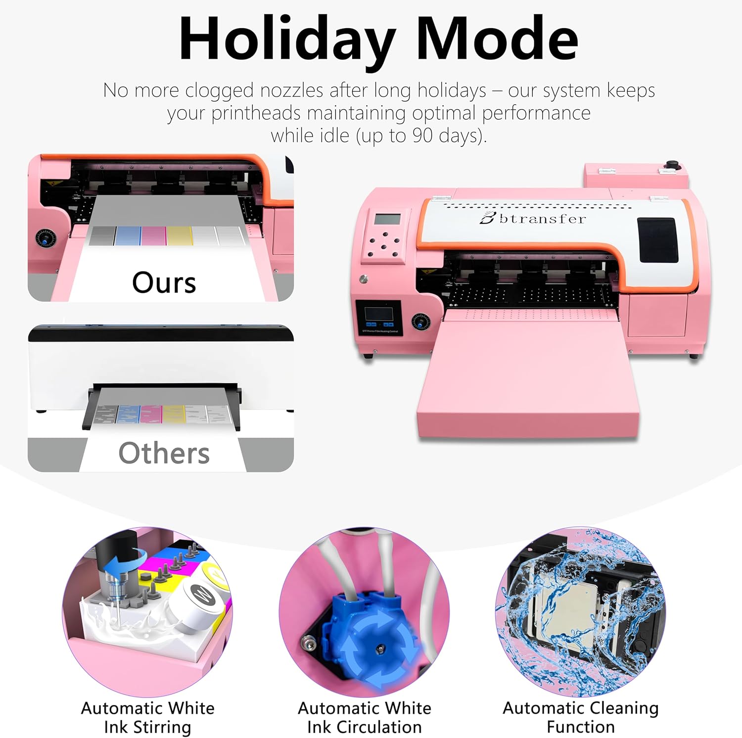 - ✅【Advanced White Ink Circulation System】:DTF Printer Bundle-Ensures Flawless Printing Results Without The Need For Pre-Treatment. This system simplifies the printing process, making It suitable For A wide range Of fabrics, from cotton To leather.