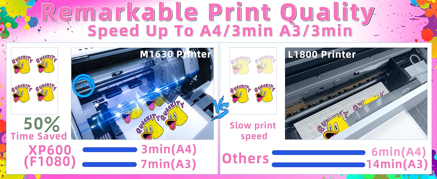 XP600 DTF transfer printer offers a far more powerful and efficient printing solution than DTF A3 L1800 printer. The performance and reliability are greatly enhanced to ensure high-quality and continuous printing