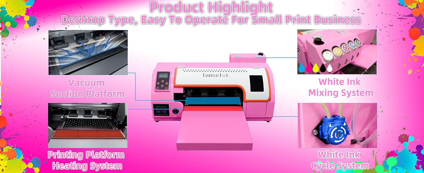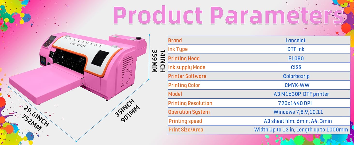 Lancelot XP600 A3 DTF Printer clothes printing machine is a reliable and affordable way for starting your t-shirt printing small business.with Single XP600 print head(Epson F1080). It can output high volume printings of industrial-grade quality at fast print speed.With Desktop size, easy to move and install, and suitable for various working environments. XP600 DTF printer is suitable for small printing studios, and easy-operated to DTF new beginners.