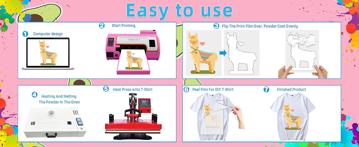 We suggest utilizing original brand ink and film since using different brands may lead to print head clogging.It is difficult to seek help if you have problems with DTF printing.